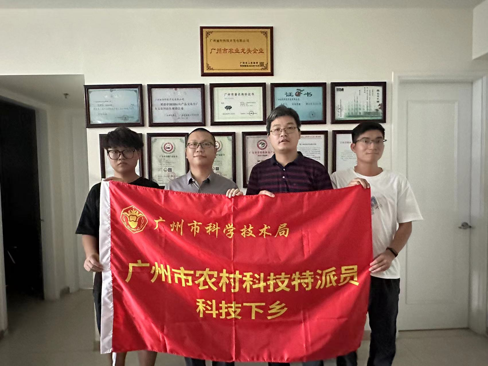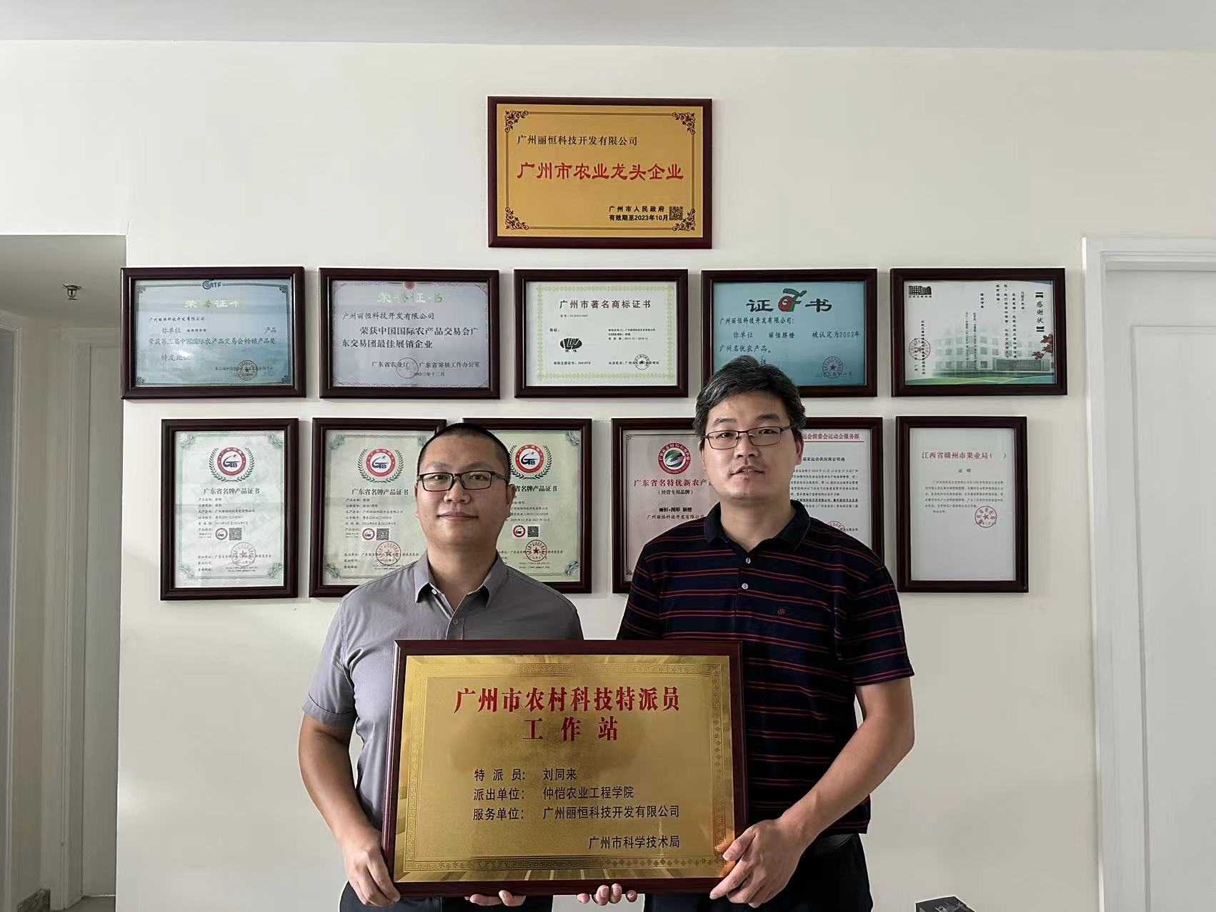2023年9月24日,m88,m88广州市农村科技特派员刘同来和团队成员到服务企业——广州丽恒科技开发有限公司举行了“广州市农村科技特派员工作站”挂牌仪式。