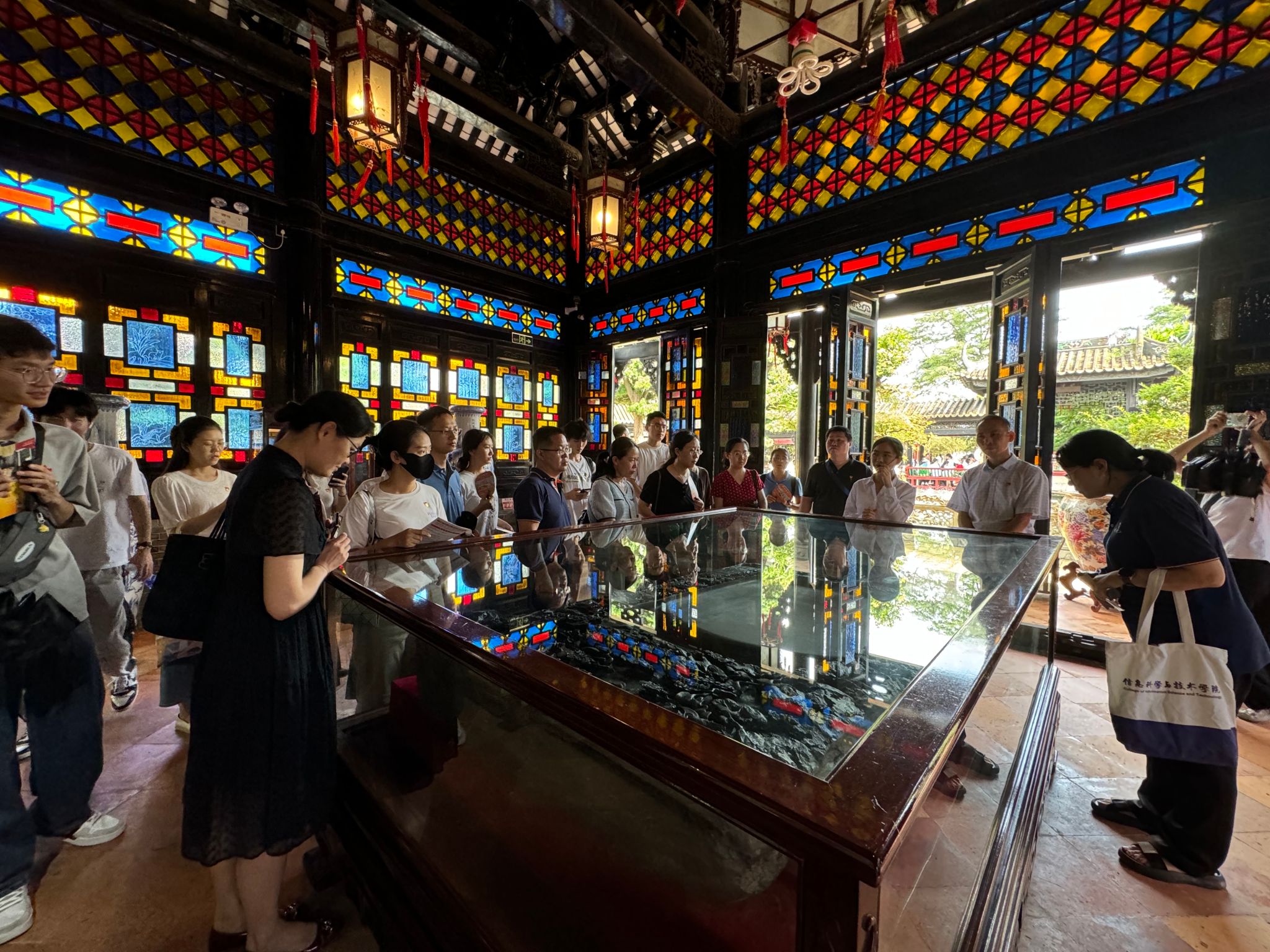 在讲解员的带领下,师生党员走进了这座以纪念北宋时期著名清官包拯为主题的广东省廉政教育基地——宝墨园。穿过仰廉桥,参观清心亭、龙图馆、宝墨堂、养廉池,在包公断案故事长廊、历代清官文化长廊、廉政教育展示等廉洁文化展区深刻领略“清心为治本,直道是身谋”的重要意义。