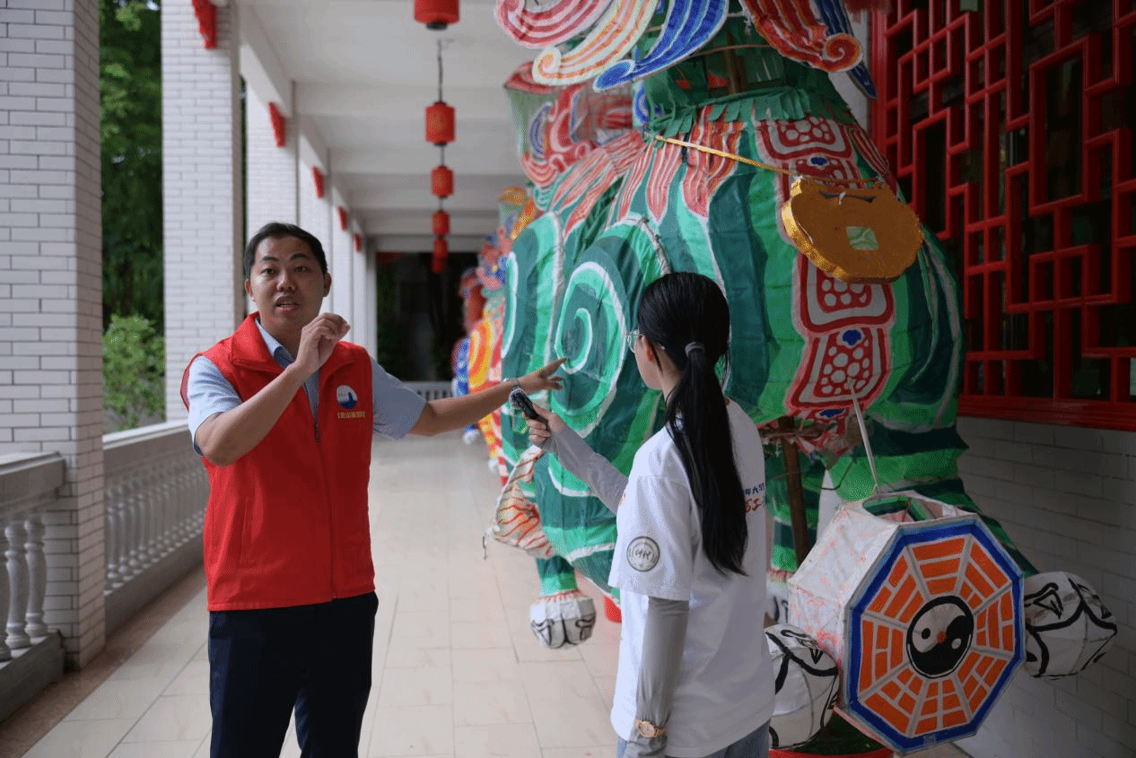 在刘部长的专业引导下,队员们了解到碣石镇五色狮的悠久历史与独特地位。志愿者详细介绍了这一传统民俗舞蹈的起源、发展脉络,以及它在地方节庆、祭祀活动中的重要作用。队员们得知,五色狮以鲜明的五行色彩象征和威武造型闻名,是碣石镇民俗活动中具代表性的文化标识。此次玄武山之行,为实践队深入探究五色狮文化奠定了基础。