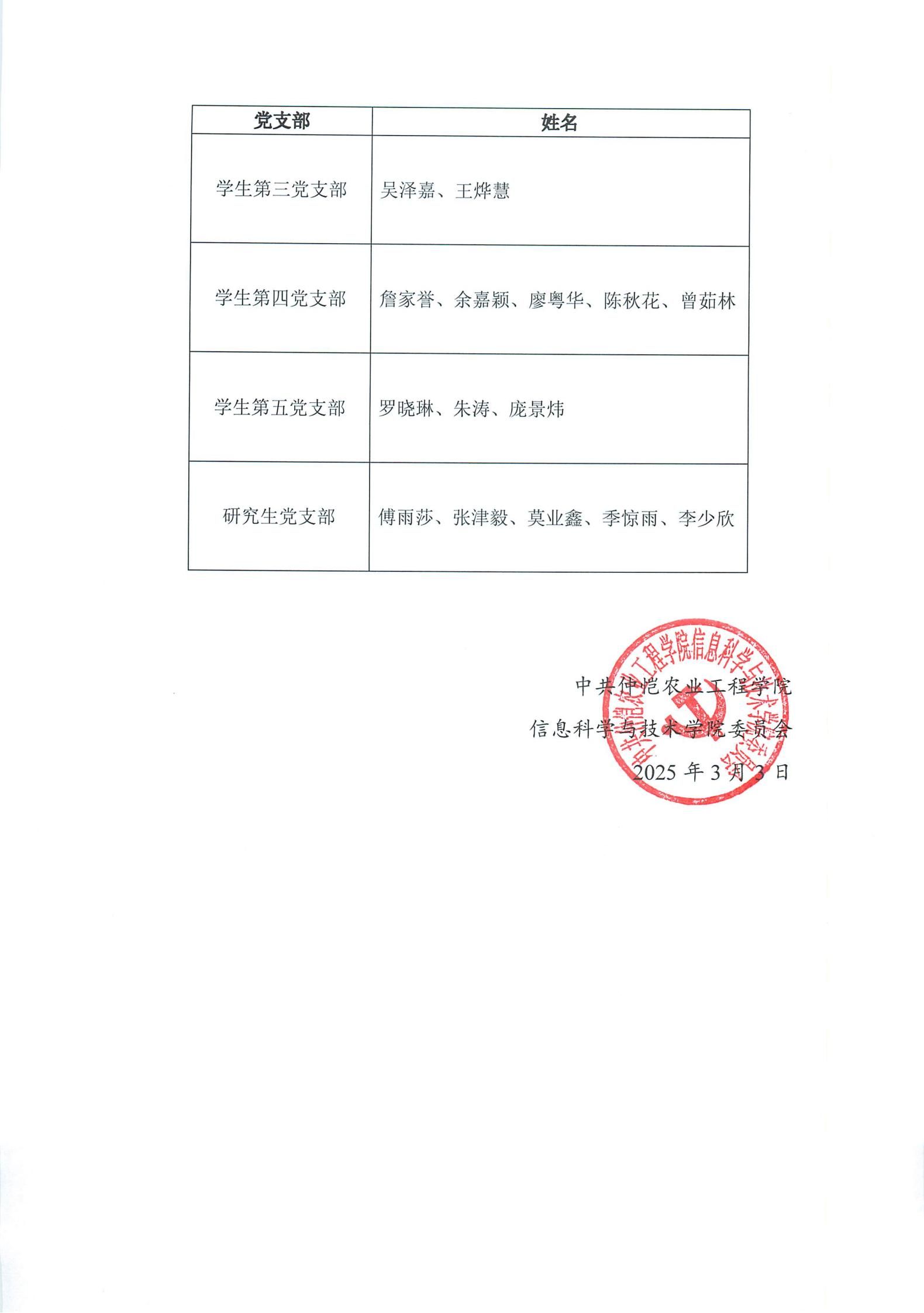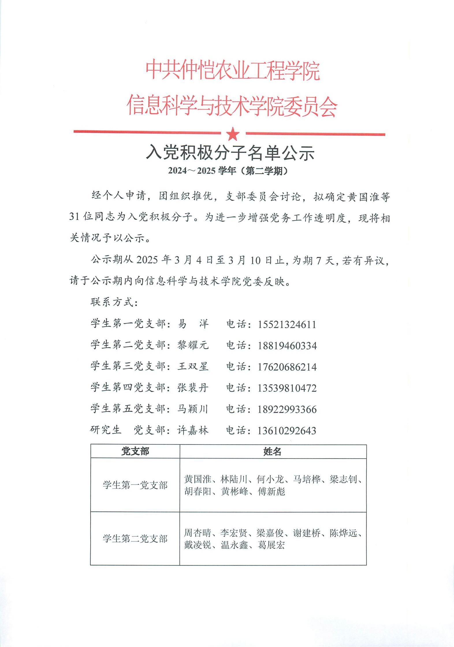2024~2025学年(第二学期)入党积极分子名单公示