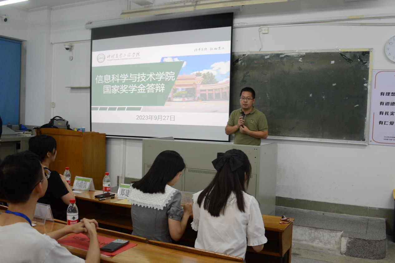 为做好国家奖学金评审工作,保证审评结果公平、公正、公开,信息科学与技术学院于9月27日晚上在海珠校区教学楼309召开了2023年国家奖学金候选人答辩会议,学院副院长郑建华,辅导员黎耀元、许嘉林、聂淑玲、杨浩俣、马颖川以及学生代表等作为评审小组成员出席本次会议。