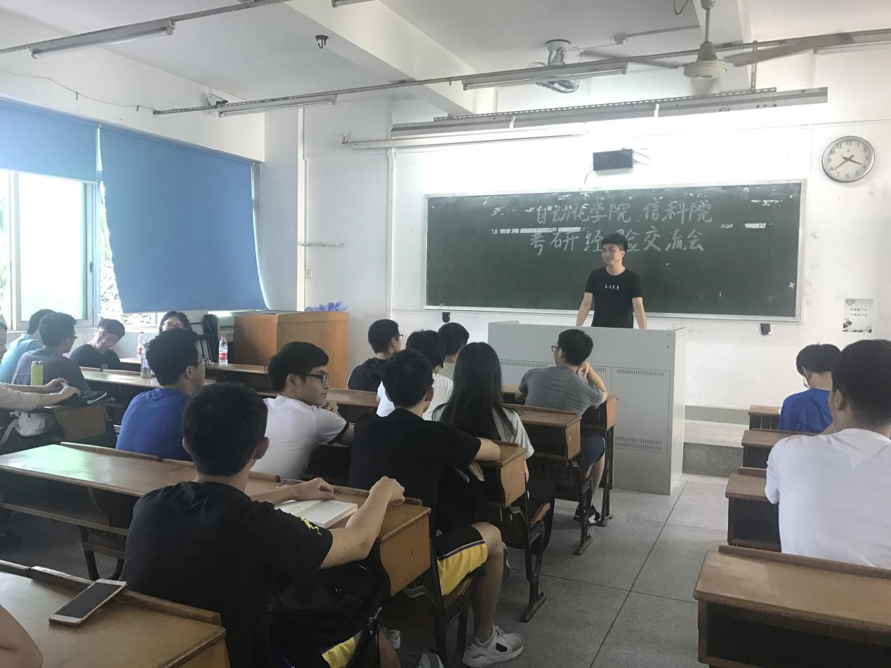 为提高学生考研热情与积极性,强化学校学风建设,5月21日上午9点,信息科学与技术学院在教学楼503举行了海珠校区理工科专场考研经验交流会。信息科学与技术学院党总支副书记王浩、辅导员刘卓,自动化学院辅导员蔡晓琳出席。此外,本次交流会邀请到了自动化学院和信息科学与技术学院部分考研成功的优秀学生代表。