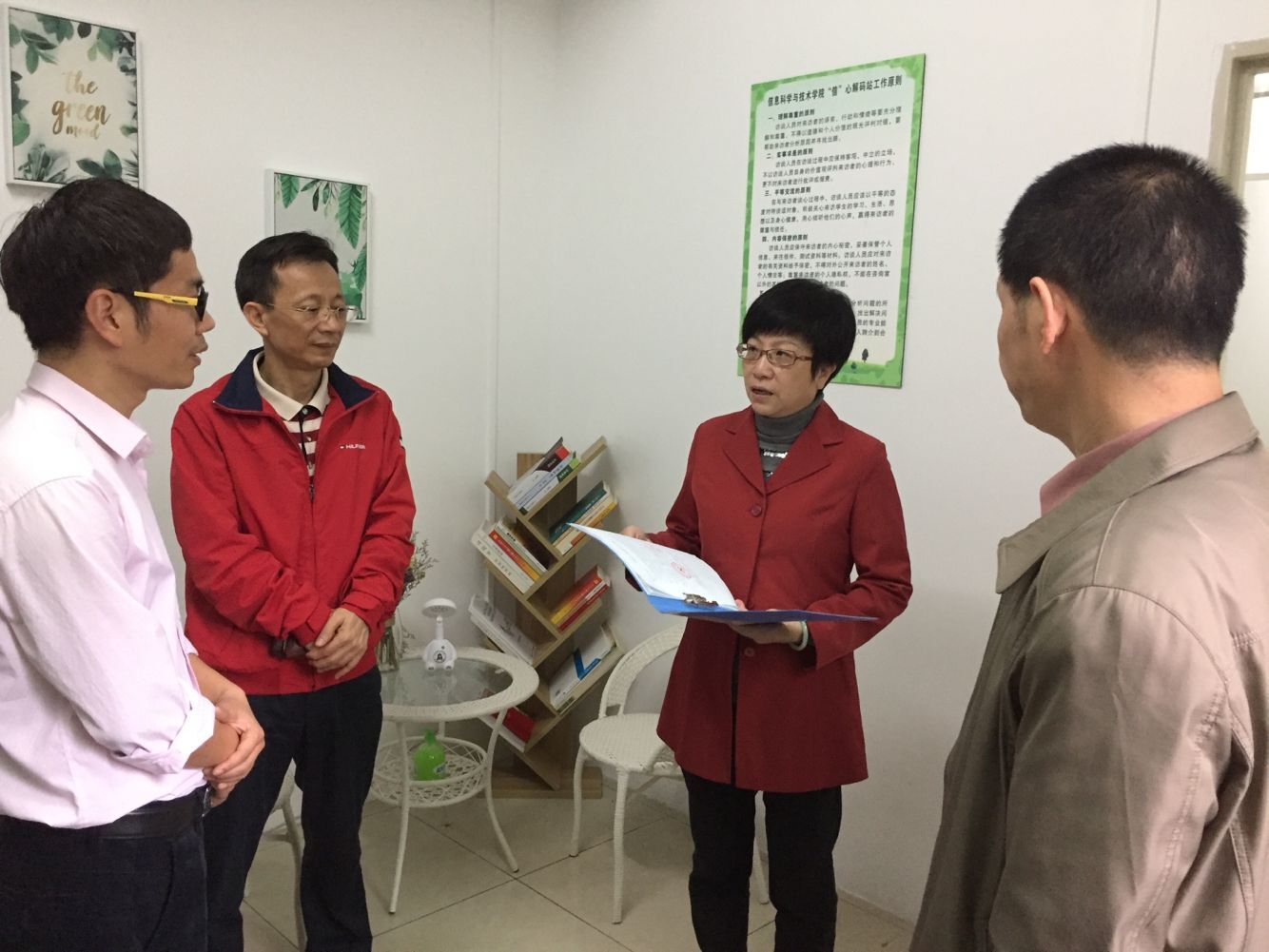 3月5日,学校党委副书记李海燕、学生处处长李伟东一行到信息科学与技术学院调研指导学生心理工作,学院党总支书记吴家培、副书记王浩和辅导员陪同。