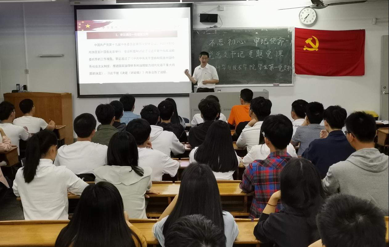 随着“不忘初心,牢记使命”主题教育工作的扎实开展,11月25日晚上,m88党总支书记吴家培在教学楼308为学院学生第一党支部开展“不忘初心、牢记使命”专题党课,支部全体党员、积极分子参加,党课内容为“学习宣传贯彻党的十九届四中全会精神”。
