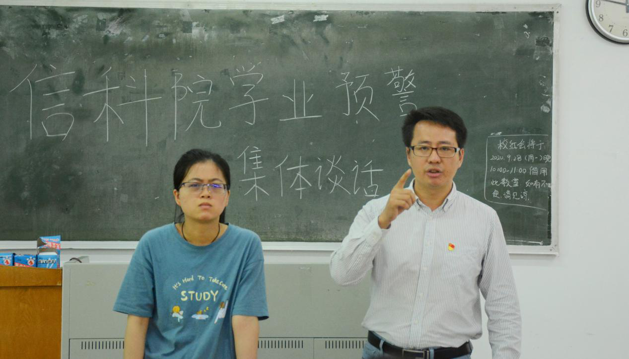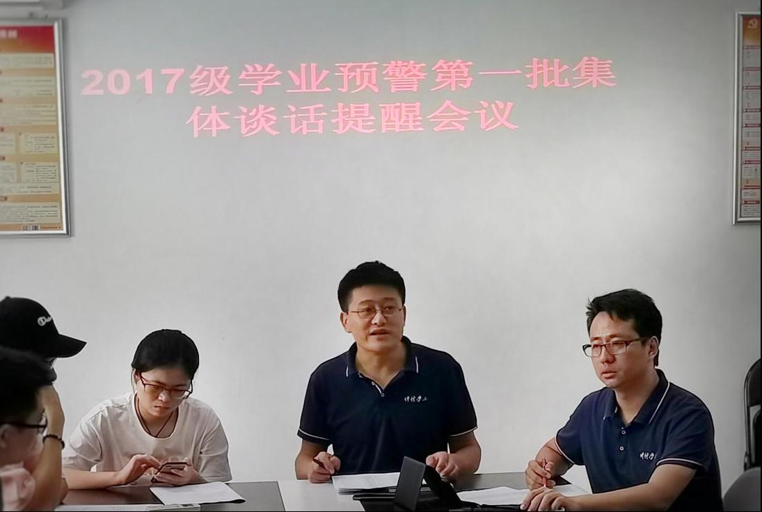随后,吴南生解读了学院对学生学业预警的工作流程,同时鼓励同学们端正学习态度,明确定位,将完成学业当做本学年的首要任务,也要调整心态,劳逸结合。他强调同学们要关注本学年的补考和重修申请时间,避免错过申请而影响毕业。