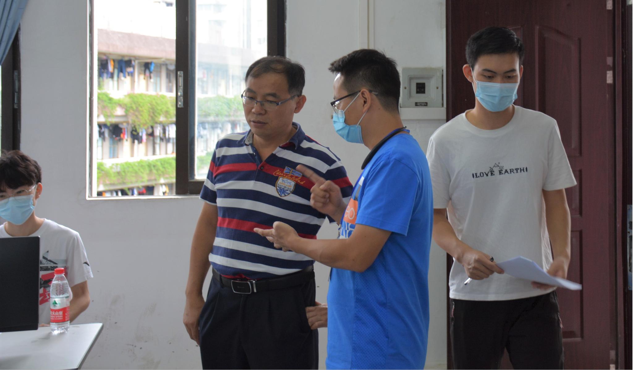 比赛开始前,工作人员对机器接触面进行了全面消毒,并收集考生近14天的健康表,考务人员宣读此次比赛细则和注意事项,并检查了考生的身份证、学生证、准考证,确保比赛能够公平公正进行。考生就坐后,院长刘双印到现场指导工作,与负责人吴南生了解竞赛情况,表达了学院对此次比赛的重视、对大赛准备工作的肯定以及对工作人员的慰问。