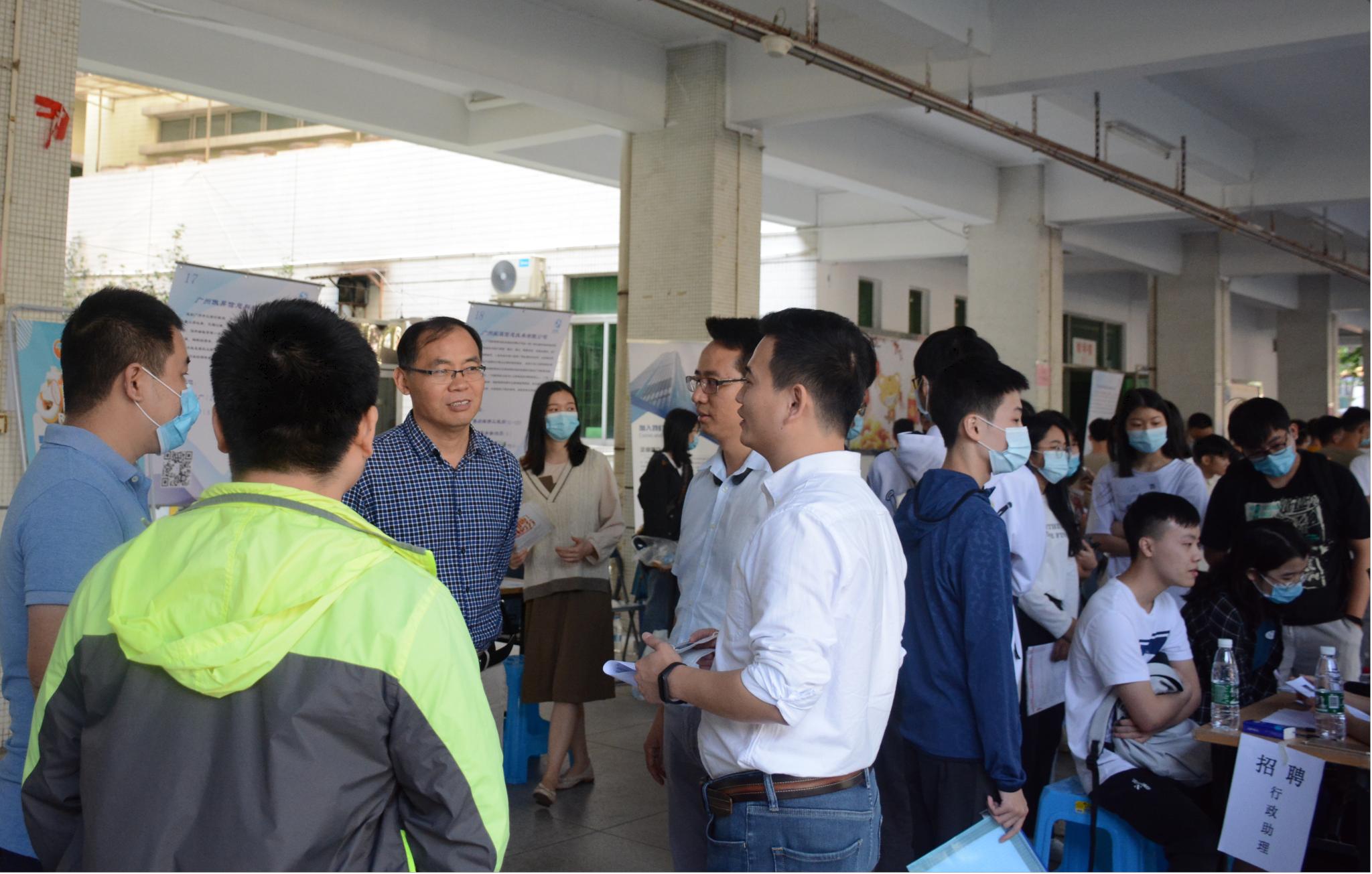 学院领导对本次招聘会给予了高度重视,学院院长刘双印、党总支副书记史孔仕、副院长杨灵和刘磊安前往招聘会现场指导工作,并细心地询问招聘单位的详细情况。此外,学院领导与广州市天河区软件和信息产业协会秘书长杨楚州通过深入有效地交谈,增强了双方的合作与交流。