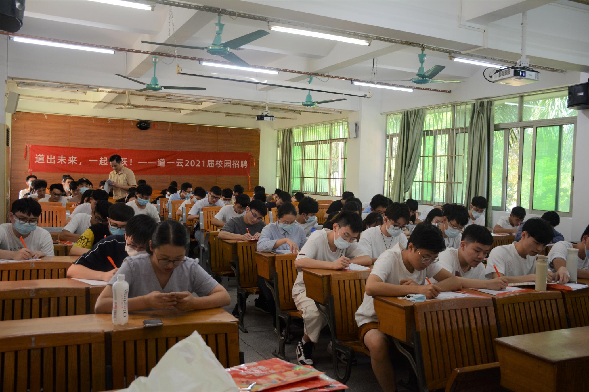 下午在教室举行了宣讲与面试环节。广东道一信息技术股份有限公司、广州市鹏龙计算机科技有限公司等企业参加了此环节。宣讲会上,各企业负责人从公司概况、企业文化、企业员工培养模式、企业目前的发展状况和发展前景与同学们作了详尽的介绍,并组织笔试和面试等活动。