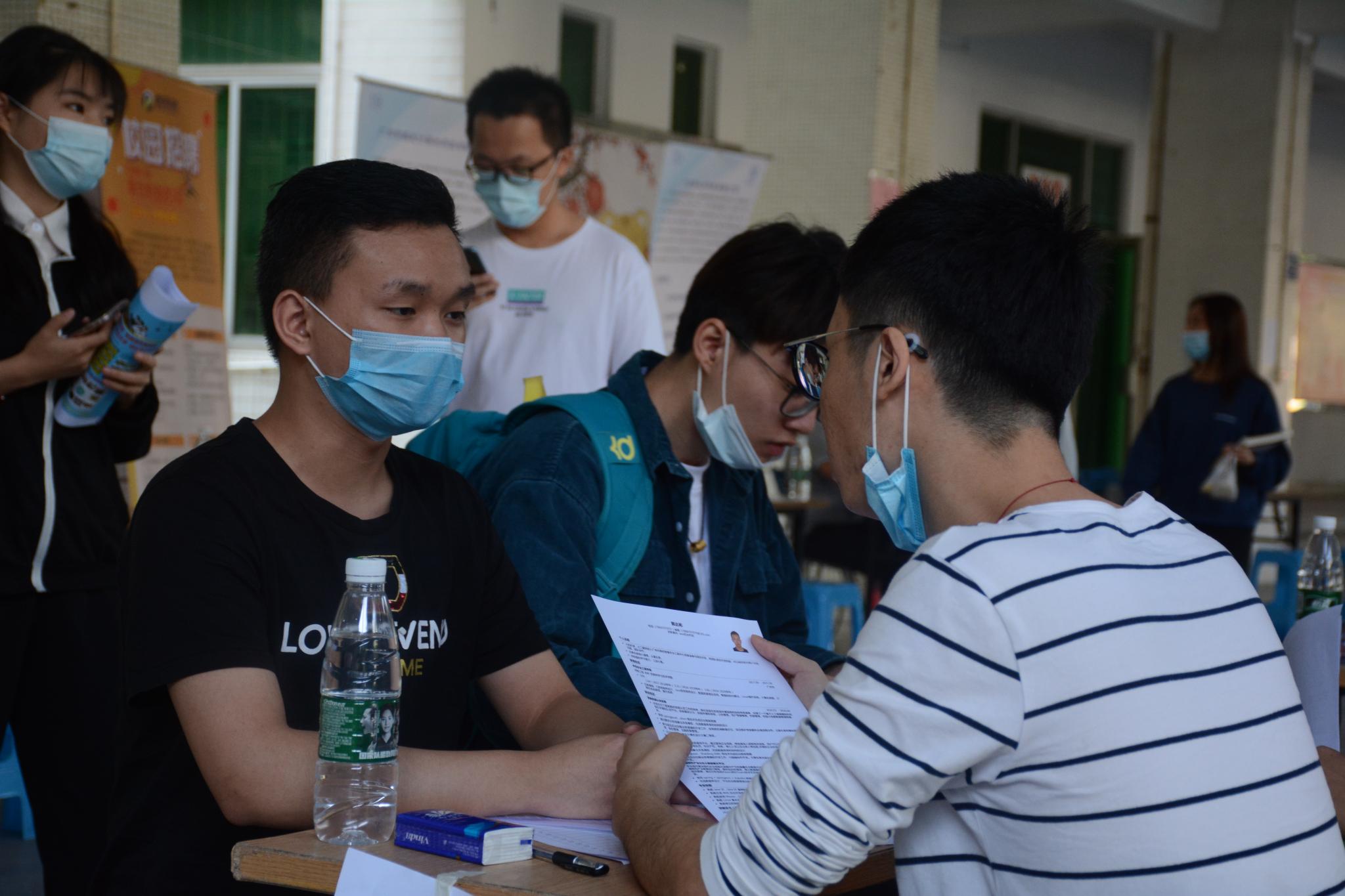 招聘会上,招聘单位通过发放传单、面对面交流等方式向学生们介绍公司的概况、职业发展前景和人员需求等信息,并解答学生们的问题。此外,应聘毕业生在投递个人简历更为谨慎了,在关心薪资前景的同时更为详细地咨询了合同签订的相关事宜,少了些盲目,多了些理性。