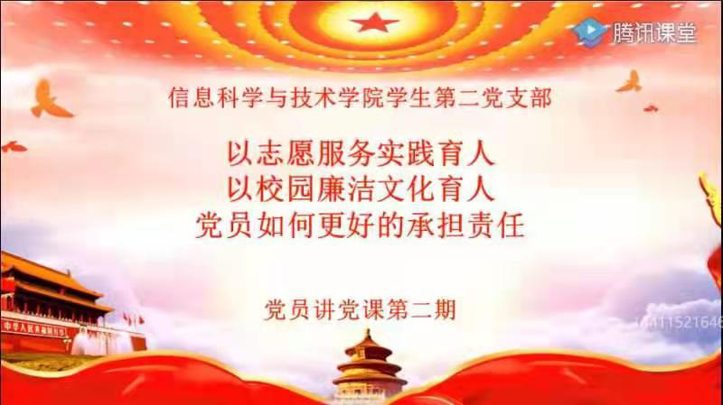 随后,公益服务小组、廉洁教育服务小组以及体验式教育党小组在平台上给大家进行党课讲解,在课上,公益服务小组小组代表人分别讲解了志愿服务是什么,为什么要实践育人,鼓励全体党员一起参加公益活动,通过参加公益活动,提升自身的服务意识以及政治意识。廉洁教育服务党小组讲解了“校园廉洁”,通过利弊分析对比,推行校园廉洁育人,指导全体党员如何更好的实现“校园廉洁”。体验式教育党小组和我们讲解了党员是如何更好地承担责任。