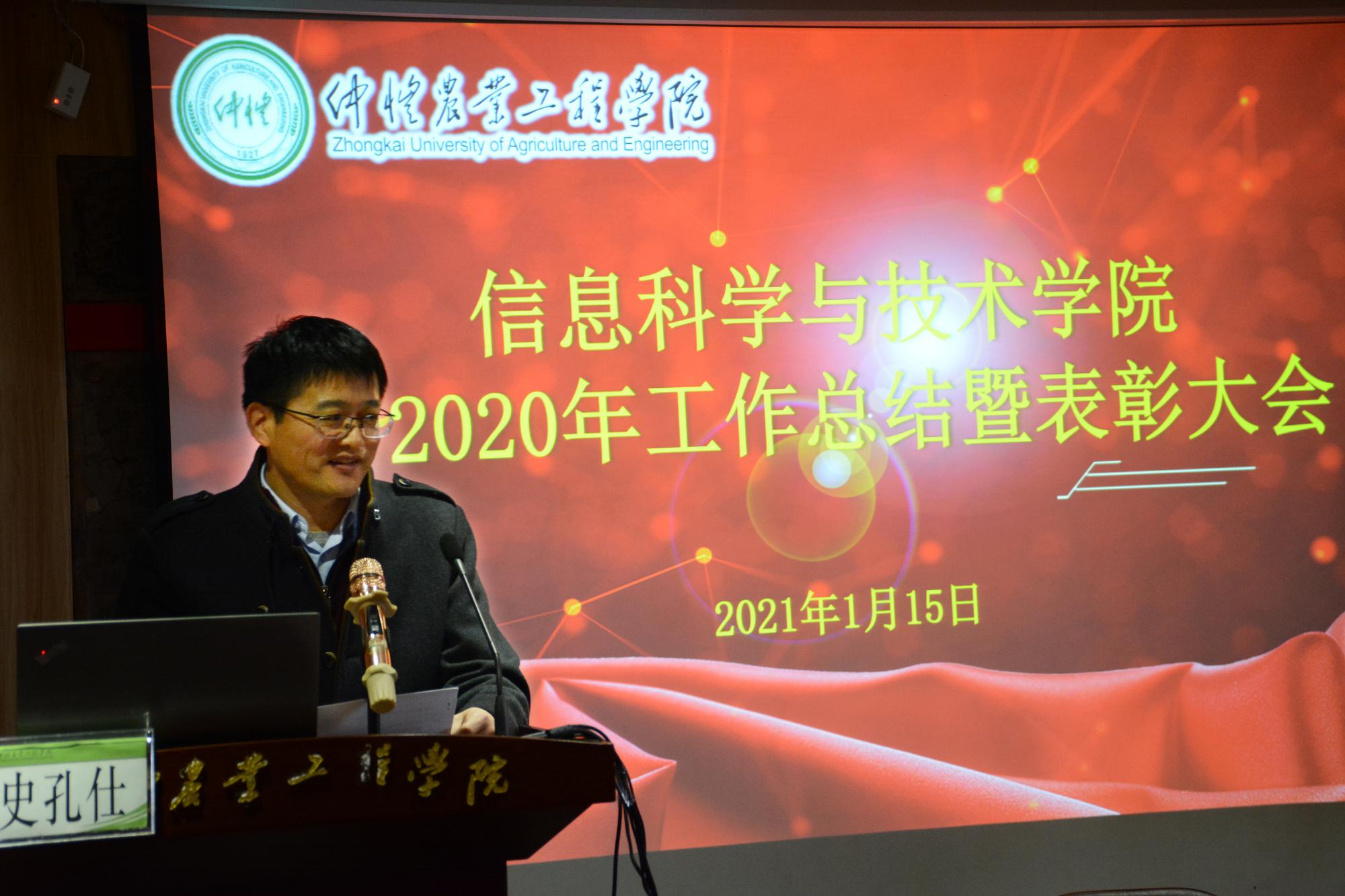 为了总结学院在2020年度的党建、教学、科研等方面的工作,统一思想、凝聚力量,m88于2021年1月15日下午在英东楼111会议室召开2020年工作总结暨表彰大会,会议由学院党总支副书记史孔仕主持,副校长朱立学、规划处处长周新华、教务处副处长洪维嘉、工会副主席邓奋敢等领导应邀出席,学院全体教师参会。