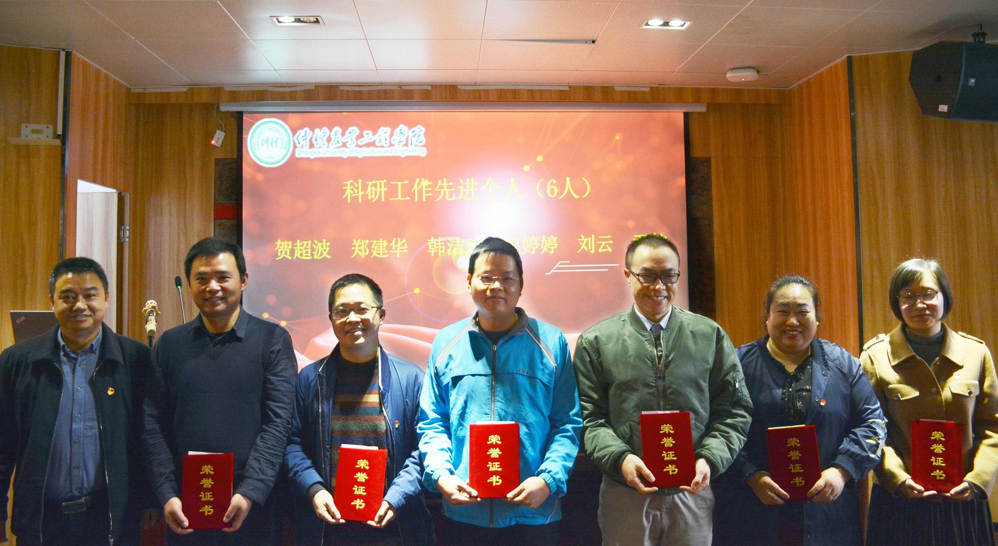 刘双印院长宣读了表彰决定。副校长朱立学为吴家培书记、沈玉利教授、石玉强处长颁发荣誉证书,感谢他们为信科院的成立和发展做出的突出贡献;获得“年度考核优秀奖”的是贺超波等8位老师;获得“教学工作先进个人”是李晟等6位老师;获得“科研工作先进个人”的是郑建华等6位老师;获得“指导学生竞赛先进个人”的是韩洁琼等6位老师;获得“学生管理工作先进个人”的是邓艳桃、田旭峰老师;获得“学生学科竞赛组织先进个人”的是鄢琼、肖明明、张世龙老师;获得“优秀党务工作者”的是吴南生老师;获得“三下乡社会服务先进个人”的是刘卓老师;获得“实验室管理先进个人”的是曹亮老师;获得“综合管理服务先进个人”的是陈健如老师;获得“研究生管理工作先进个人”的是卢娜老师。与会领导为获得先进个人奖的教师分别颁发了荣誉证书。