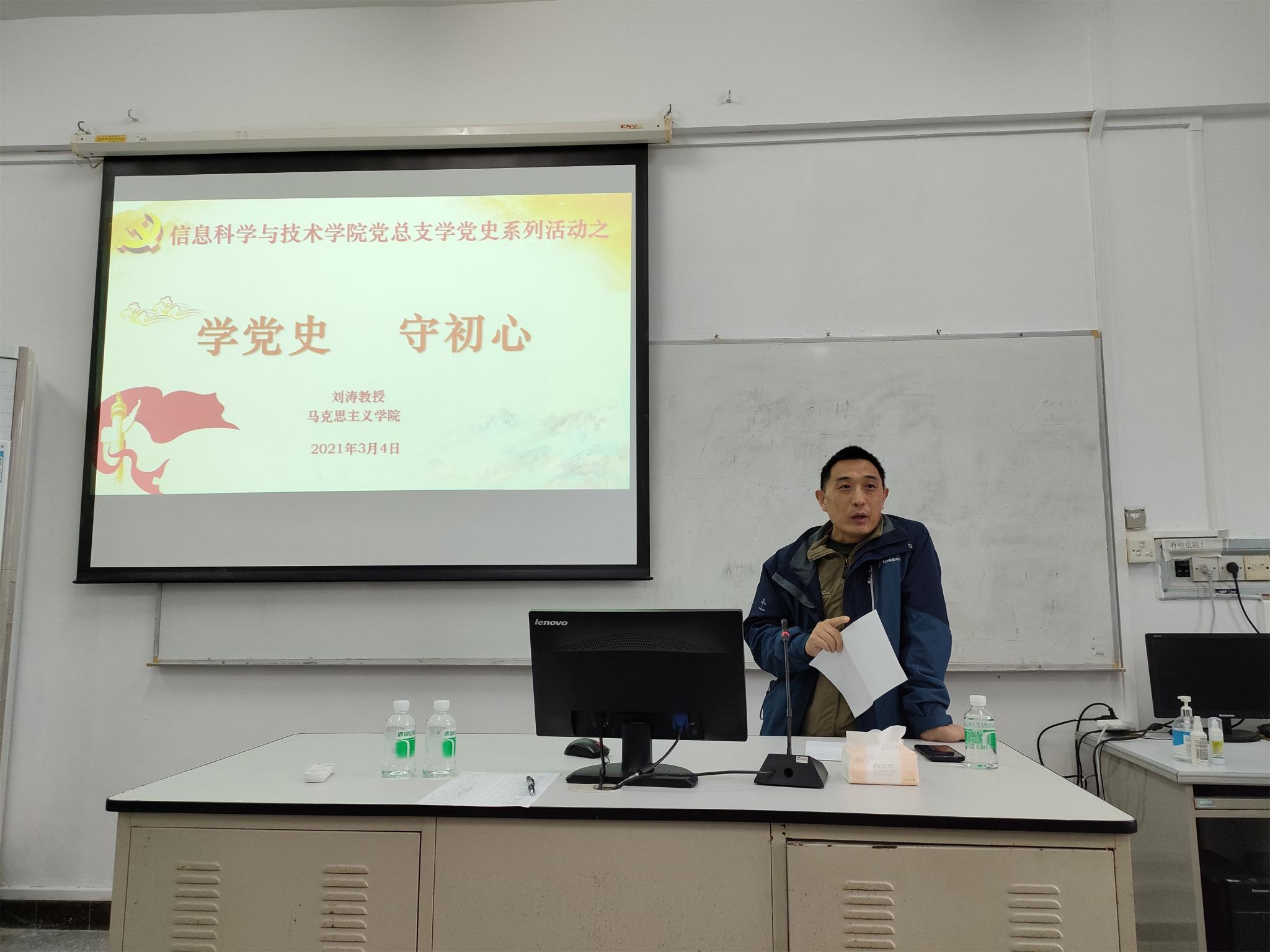 2021年是中国共产党百年华诞。为了进一步响应党中央的号召,落实“学党史、悟思想、办实事、开新局”的精神,把全员学党史做到实处,m88于3月4日邀请马克思主义学院刘涛教授在英东楼710给全院教职员工讲授了主题为“学党史,守初心”的党史课。