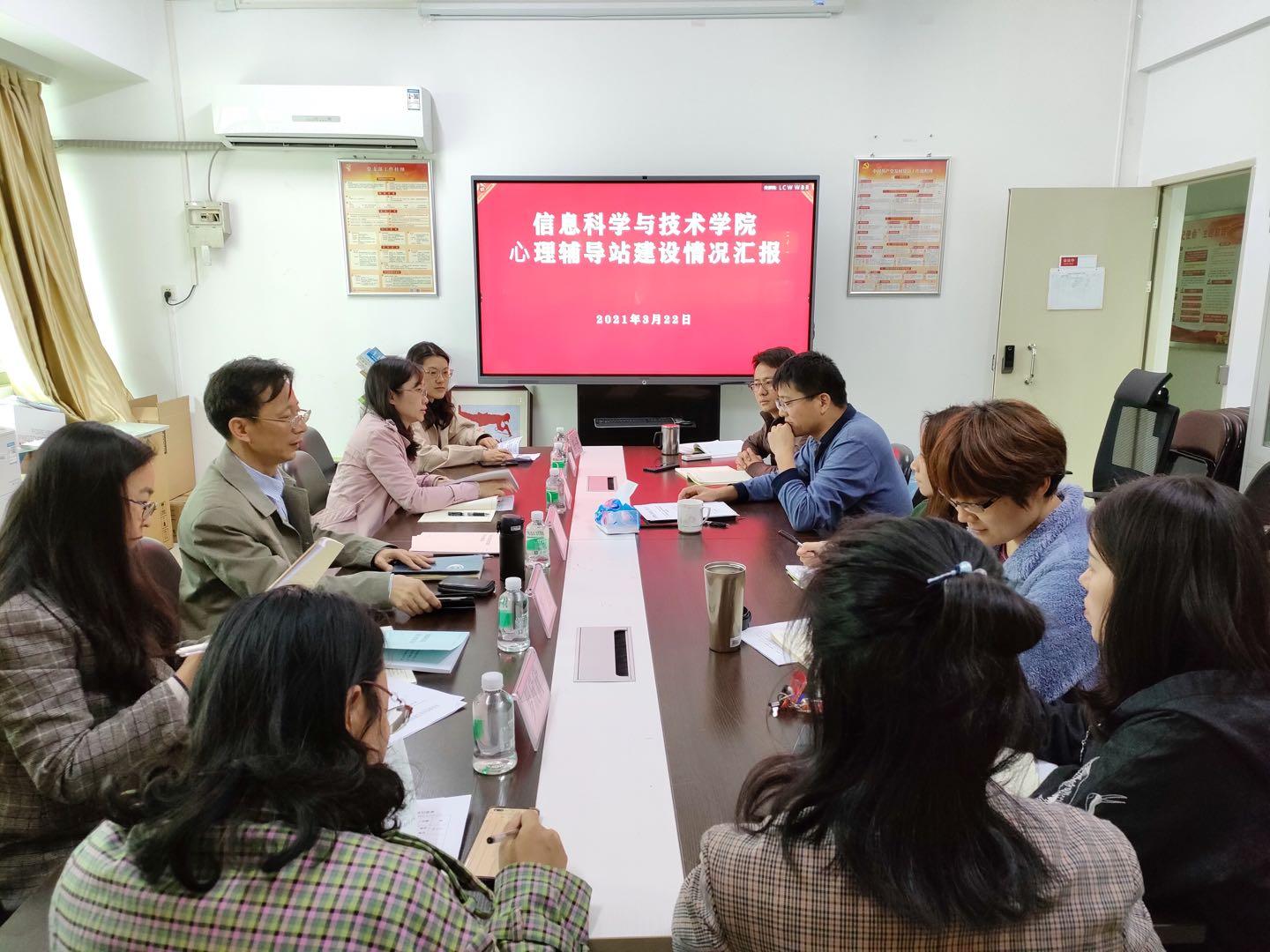 为了落实《关于进一步加强2021年春季学期学生心理健康教育工作的通知》(学字〔2021〕19号)文件精神,积极推动学校心理健康教育与心理危机干预机制的构建和完善,3月22日,学校党委学生工作部部长李伟东、副部长黄霞一行到m88督导检查心理辅导站建设情况,学院党总支副书记史孔仕、全体辅导员参加了检查汇报会。