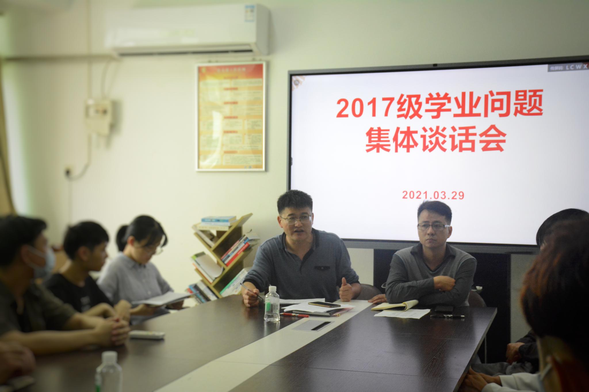 为了学院毕业生能够顺利毕业,3月29日,m88在教学楼312会议室召开毕业班学业问题集体谈话会议。参与会议的有学院党总支副书记史孔仕、2017级辅导员吴南生、易洋以及毕业班部分学生。