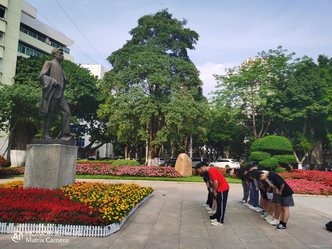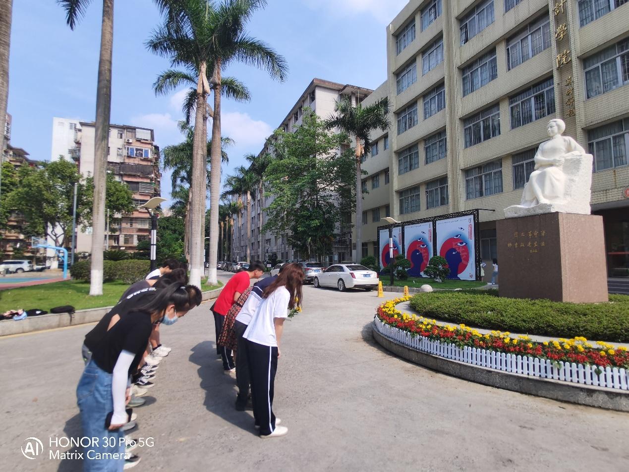 在党支部书记邓艳桃和田旭峰的带领下,学生党员代表向廖仲恺先生和何香凝先生雕像献花,借此表达对仲恺先生和香凝先生的缅怀之情。