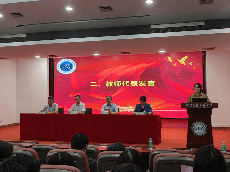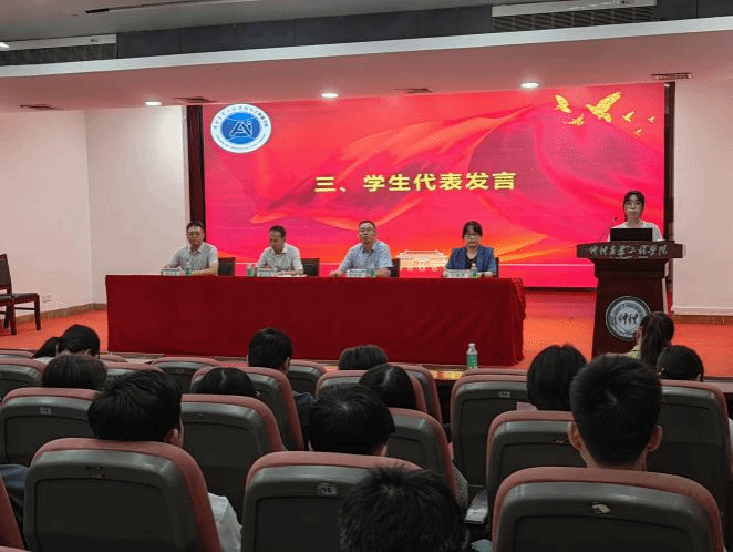 在校生代表学长高年级优秀学生代表物联网222班林昊鑫分享了自己在学院学习生活的体会与收获,为学弟学妹们提供了宝贵的经验。新生代表电子251杨扬上台发言,表达了对大学生活的无限憧憬与期待,与同学们共勉在这段崭新的旅程中,能以好奇心探索未知,以坚韧心攻克难题,以实践丈量青春的深度,用实干书写人生的华章,在成就个人梦想的同时,为学校增光添彩,为祖国的美好未来贡献青春力量!