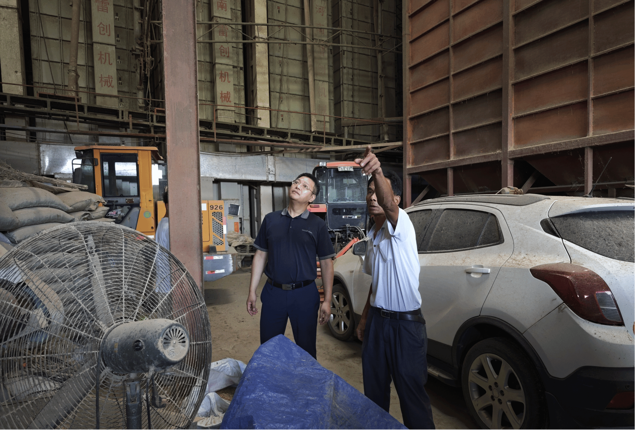 在学员区燕玲负责的开平市赤水镇沙洲水井坑农机专业合作社,导师一行实地考察了农用无人机、稻谷烘干机等现代化农业装备,并详细了解合作社的技术力量、社会化服务开展以及近年水稻病虫害发生与防治情况。冯大春教授结合自身在农机社会化服务领域的研究积累,围绕国家全面推进农业社会化服务的新形势,就推动农机服务向专业化、标准化、集约化发展,特别是依托智慧农业应用,拓展规模化种植多环节及全程生产托管服务新模式等方面,提出多项切实建议,助力破解“谁来种地、谁能种地、如何种地”等现代农业发展瓶颈,进一步夯实粮食安全根基。