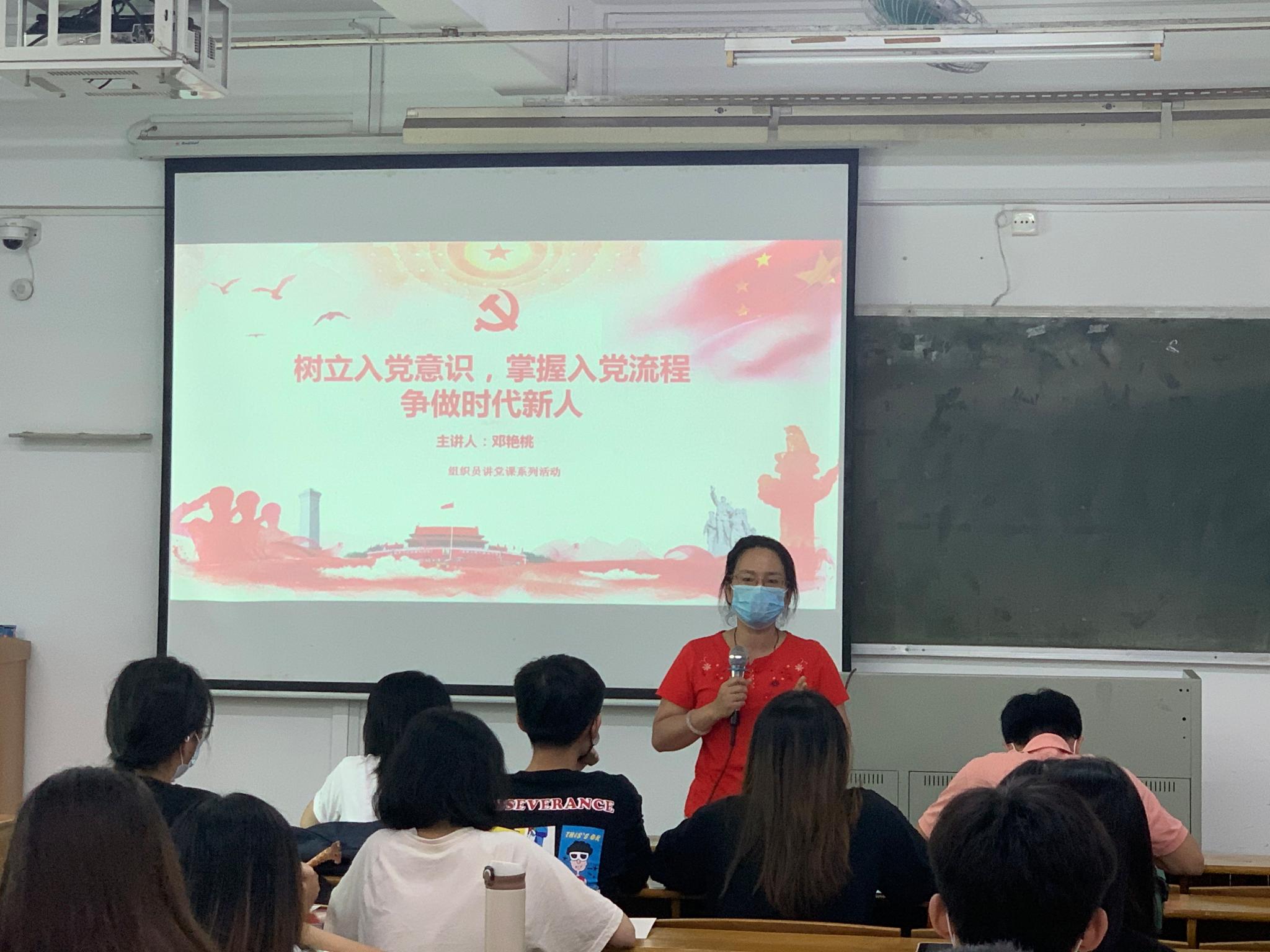 接着,辅导员邓艳桃以“树立入党意识,掌握入党流程,争做时代新人”为题,从入党意识、入党流程、争做时代新人三方面帮助助班正确引导新生切实端正入党动机,做到从思想上、行为上入党。她强调“少年强则中国强”,各位助班要坚定自己的理想信念,要做到遇到功劳就要让,遇到困难就要上,在迎新的工作中要正向引导新生,做好新生的入党启蒙教育,为社会培养优秀人才。