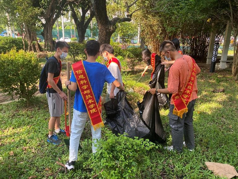 近日,信息科学与技术学院学生第一党支部组织学生党员、入党积极分子在南区开展学生社区志愿服务。