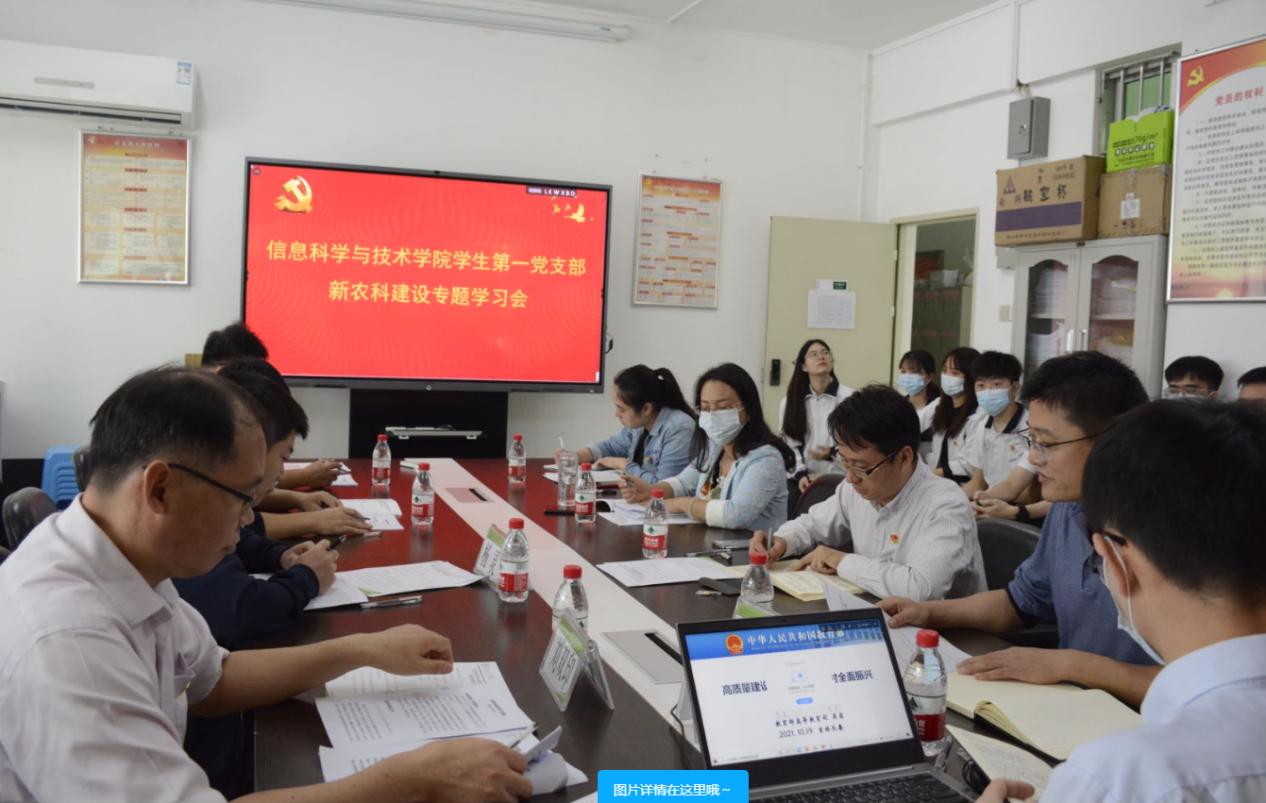 会上,教师代表和学生党员代表从自身角度纷纷对新农科建设专题学习表达了自己的学习体会和心得。最后,史孔仕对会议进行总结,他表示,信息科学与技术学院学院全体师生要认真学习全国新农科建设工作推进会精神,并贯彻落实到学院的专业建设、课程建设、教材研究和人才培养的各个领域中去,要在实验室建设和实习实训基地建设中服务农业生产,致力于培养更多知农爱农新型人才,广大信科学子应顺应时代潮流,将信息技术与现代农业生产结合起来。