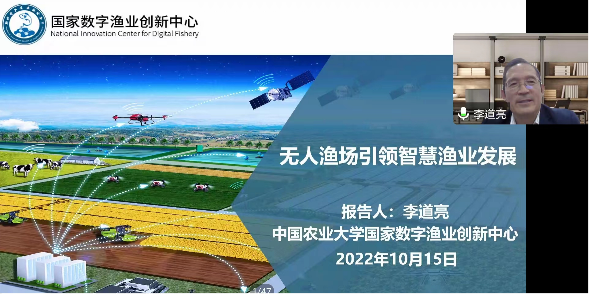 随后,分论坛进入嘉宾引导发言阶段。中国农业大学教育部长江学者李道亮教授以“无人渔场引领智慧渔业发展”为题,概述了当前行业的产业需求与技术需求、无人渔场的理论与技术探索现状,介绍了无人渔场建设实践的多个案例,随后分析了当前无人渔场发展的主要挑战,并给出相关发展建议。广东省现代农业装备研究所孟祥宝教授以“智慧农业之我见”为题,讲述了对智慧农业的理解和智慧农业的SMART框架,分析了当前智慧农业所面临的问题与挑战并从多方面提出建设性意见,最后从应用领域介绍了一种数云端协同智慧农业应用模式。哈尔滨工业大学(深圳)陈波教授以“‘遥感大数据+农业’助力智慧农业新篇章”为题,分享了研究团队在卫星遥感领域取得的相关成就、超宽幅遥感卫星的突出优势及遥感大数据智能处理软件等,分析了遥感技术在农业中的应用模式,最后介绍了与中科星图联合探索的遥感农保应用实践。广东欣农互联科技有限公司李海刚总经理以“构建产业生态,助力养殖业创新发展”为题,首先概述了科技赋能农业的趋势及本质,随后介绍了金蝶集团在现代农业的赋能与投入,最后分享了欣农互联在智慧养殖的多个落地应用场景。