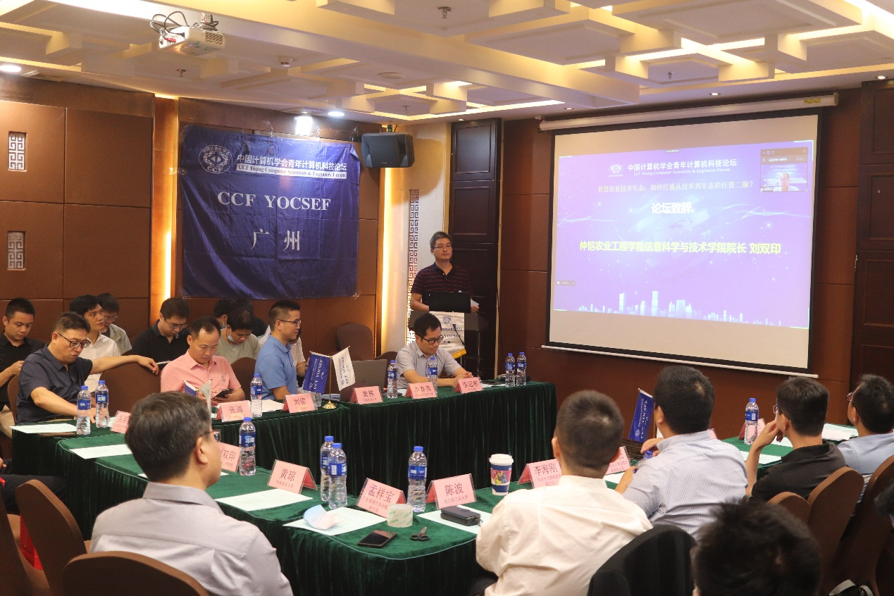 “智慧农业技术生态:如何打通从技术到生态的任督二脉?”论坛邀请了中国农业大学国际学院院长/教育部长江学者李道亮教授、广东省现代农业装备研究所副所长孟祥宝教授级高级工程师、哈尔滨工业大学(深圳)空间科学与应用技术研究院/航天科技研究院陈波教授、广东欣农互联科技有限公司智慧农业事业部李海刚总经理作为引导报告嘉宾。m88,m88信息科学与技术学院院长刘双印教授、CCF广州分部执委黄琼教授(华南农业大学)、李春英副教授(广东技术师范大学)、李冠彬副教授(中山大学)、黄栋副教授(华南农业大学)、刘同来副教授(m88,m88)、吴惠粦副主任(广州国家现代农业科技创新中心)、谭台哲主任(河源市湾区数字经济技术创新中心执行主任/河源广工大协同创新研究院副院长/河源市人大常委)、杨建仁副总经理(广州云硕科技发展有限公司)、肖茂财总经理(荔峰科技(广州)有限公司)等来自多所高校及企事业单位共500多人次线上线下方式参加了论坛活动。