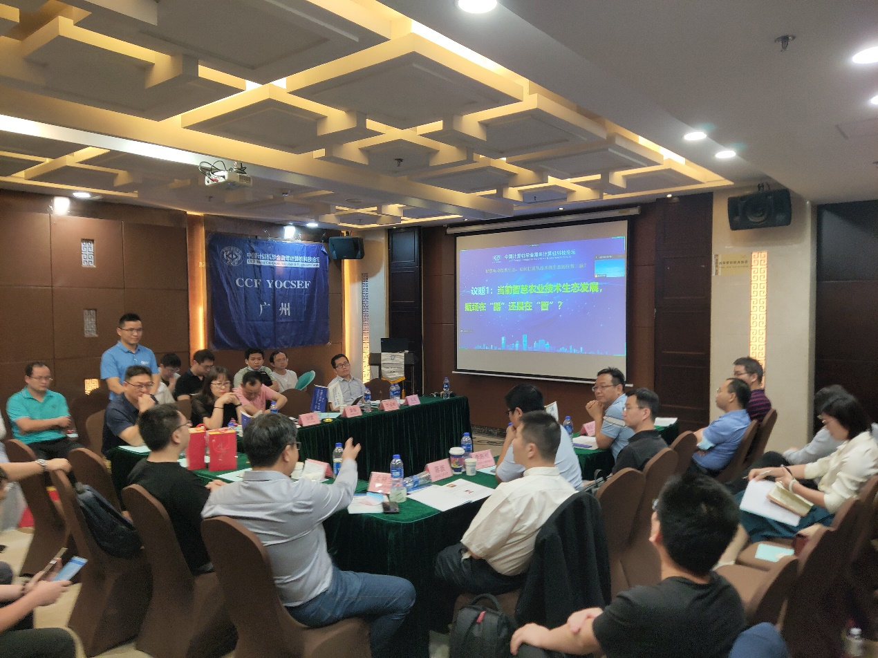 在引导报告之后,论坛进入思辨环节。与会嘉宾围绕“当前智慧农业技术生态发展,瓶颈在‘器’还是在‘智’?”“智慧农业技术生态建设,‘智慧’的落脚点在哪里?”“智慧农业技术生态如何助力广东省乡村振兴战略?”等三个议题展开深入思辨,论坛邀请桂林电子科技大学北海校区常务副校长王鑫教授,广州国家现代农业科技创新中心副主任吴惠粦高级工程师,河源市湾区数字经济技术创新中心执行主任谭台哲副教授以及广州云硕科技发展有限公司杨建仁副总经理担任思辨嘉宾。