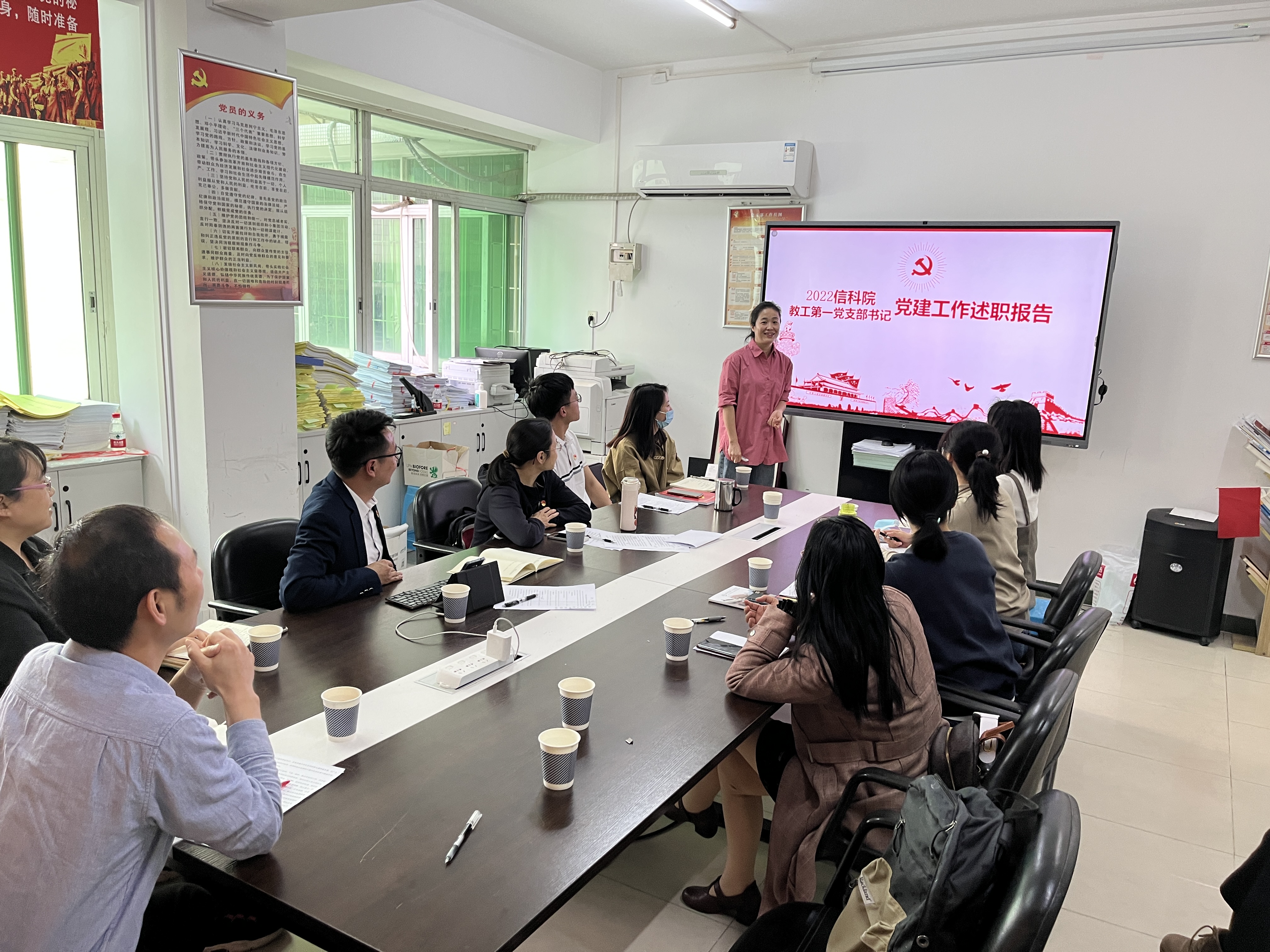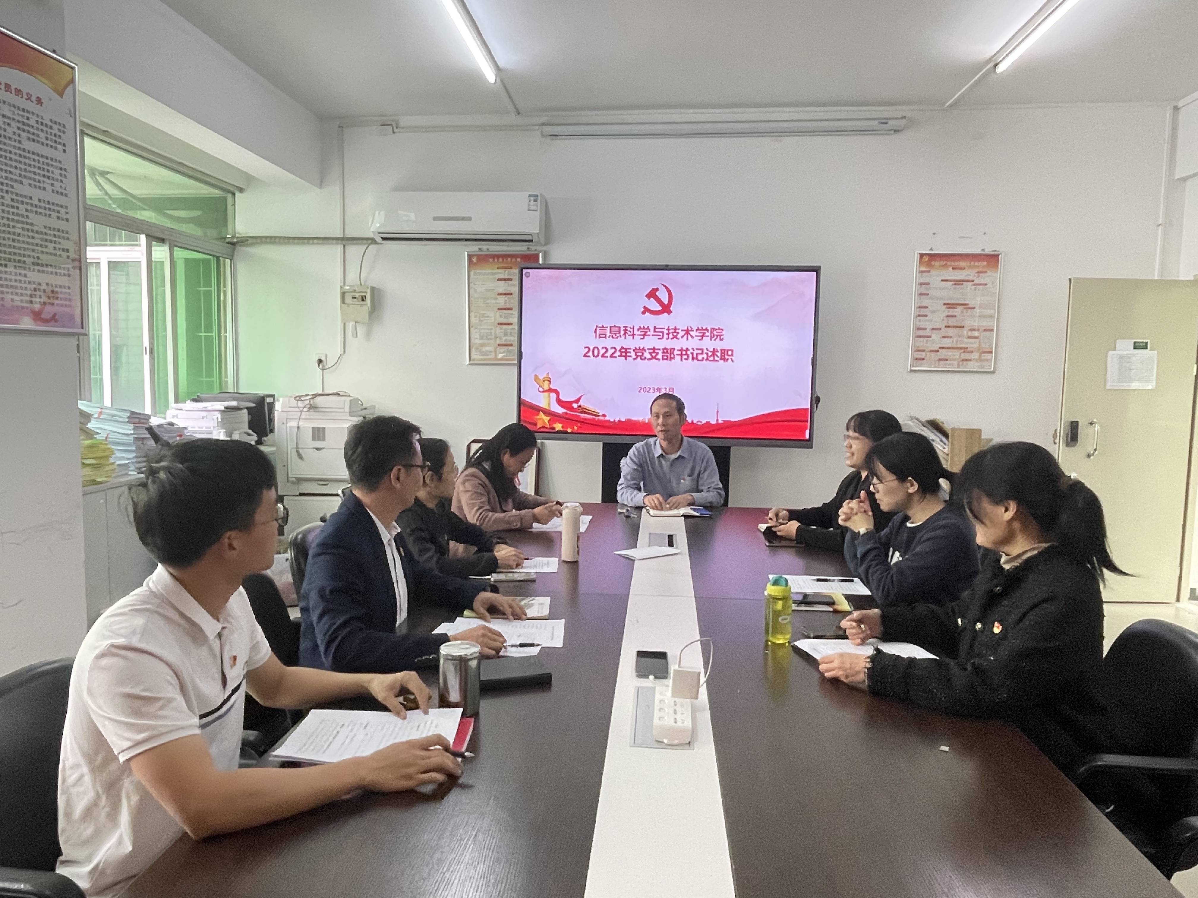 会上,七位教工党支部和学生党支部书记围绕党支部一年来的工作情况依次述职,分别从年度特色工作、履职情况、存在的主要问题和不足、改进工作的思路和举措等方面进行汇报。党委书记熊友华结合述职和平时掌握的情况逐一点评,肯定了各支部党建工作所取得的成绩和亮点,指出了各支部存在的问题与不足,同时对各支部抓好党建工作提出了明确的要求和具体的建议。他指出,2023年是全面贯彻落实党的二十大精神的开局之年,做好今年党建工作任务艰巨、责任重大。党支部是党在大学全部工作和战斗力的基础,一要扛起政治责任大旗,把政治建设摆在首位,把政治标准和政治要求贯穿于基层党建工作的始终。二要始终牢记筑牢堡垒,不断增强工作本领,着力促进党建和教研、学生工作等业务的深度融合,以高质量党建助推学院高质量发展。三要践行党内规章制度,贯彻民主集中制,严格按照党的组织原则和程序议事决策,在集思广益和聚力执行中不断提升党支部的领导水平。