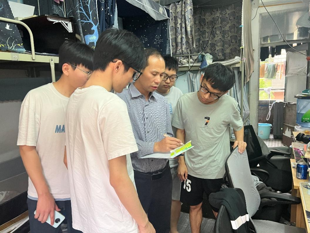 熊书记与学生进行亲切交谈,询问学生学习和生活情况,了解学生实际需求。走访过程中,发现有一间宿舍的同学正在写入党申请书,熊书记还亲自指导同学们规范撰写。同时叮嘱同学们注意个人卫生和宿舍环境卫生,保持积极的心态,合理作息,坚持锻炼,共同营造安全温暖、健康向上的校园环境,以饱满的热情投入到学习生活中去。