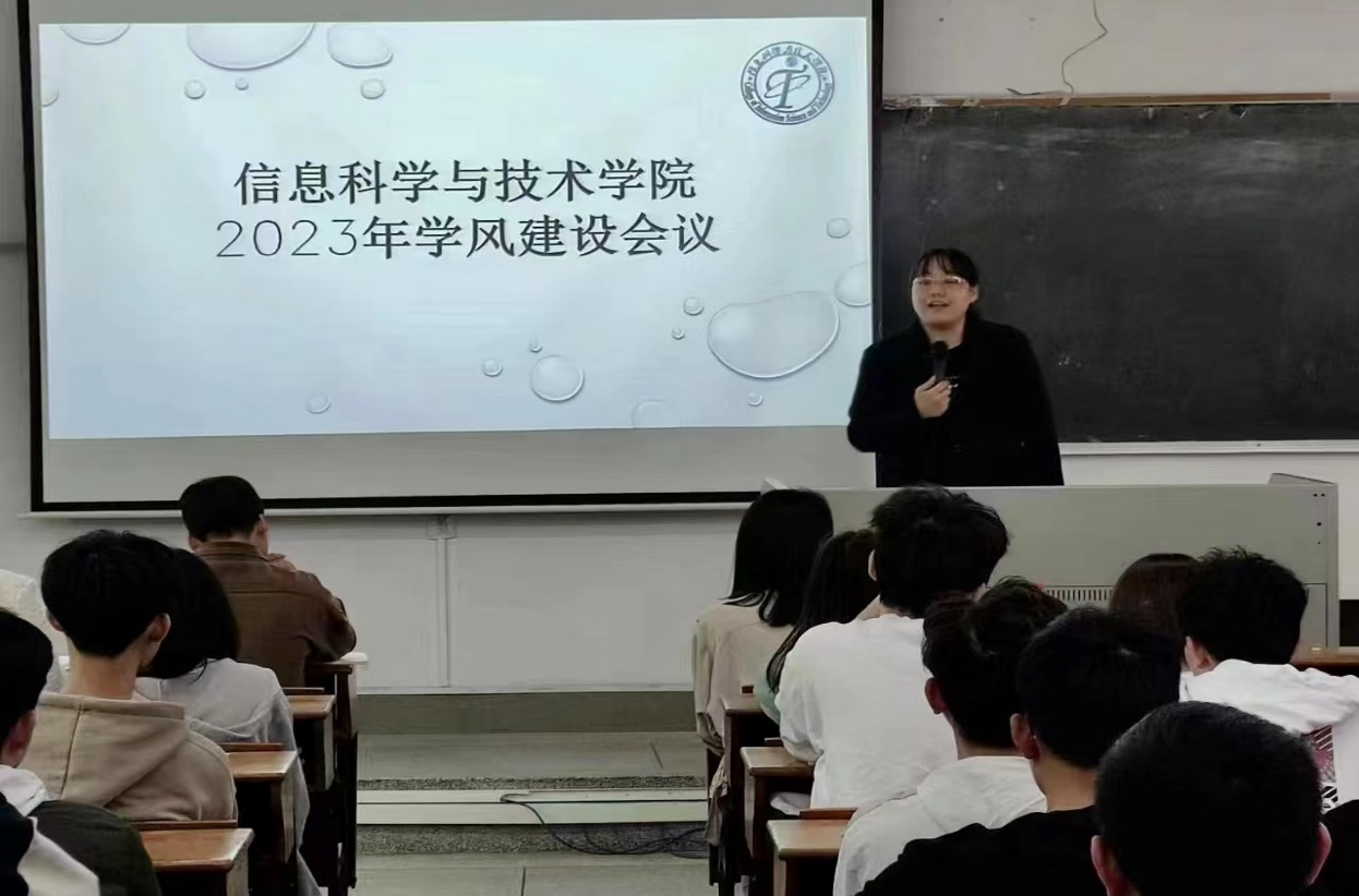 为进一步深化学风建设,构建学风建设长效机制,形成浓厚的学习氛围,3月14日,信息科学与技术学院在教学楼303召开2023年学风建设会议。学院党委副书记吉晓娟、辅导员、院学生会相关干部以及各班纪律委员参加了本次会议,会议由钟翠主持。