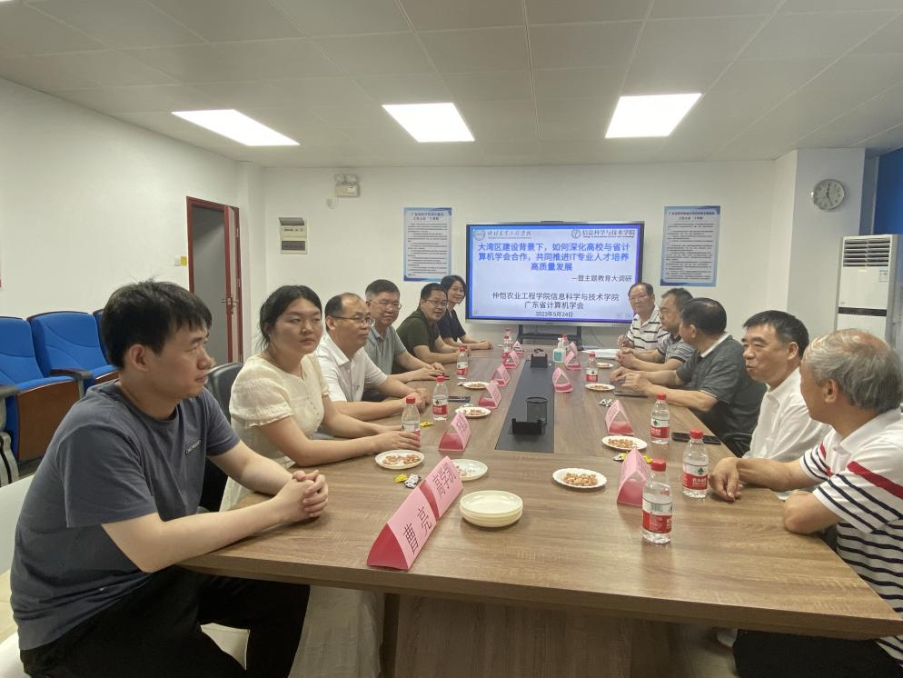 会谈中,刘双印介绍了学院党建引领学科和专业发展情况及学院“十四五”规划。主题教育结合工作实际,重点介绍了学院计算机科学与技术专业国家一流专业建设情况及教育部工程教育专业认证进展情况,并指出了学院当前在专业建设存在的疑难点。与会专家就如何推进国家一流专业和电子信息专业硕士点学科建设展开深入研讨,广东省计算机学会专家们积极献言献策,建议加强高校与省计算机学会深度合作,以省计算机学会为桥梁开展校企和学会产学研合作;双方还就如何通过学科科技竞赛提升学生的动手实践能力开展了研讨,初步确定我校承办2024年第二届两岸四地大学生计算机创新作品赛,以赛代训、以赛代练,进一步提高国家一流专业和工程教育认证专业的人才培养质量。本次大调研取得了一系列有利于推动学院IT专业和学科建设高质量发展的先进经验和优秀做法。