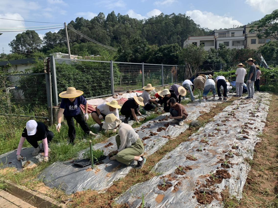 初到农村,农场老师组织大家开展“你划我猜”、“听歌识曲”等素质拓展游戏,提高了同学们的团队合作意识,为接下来的集体劳动奠定基础。在三农实践课程中,同学们通过知农、学农课程,了解常见农作物及其特点、耕种时间、生长习性以及农耕用具知识,掌握基本耕种技能,亲身下到农田中,进行除杂草、剪枝条、翻土、播种、浇水、施肥等一系列耕种活动,充分体现了青年人“自找苦吃“的精气神。