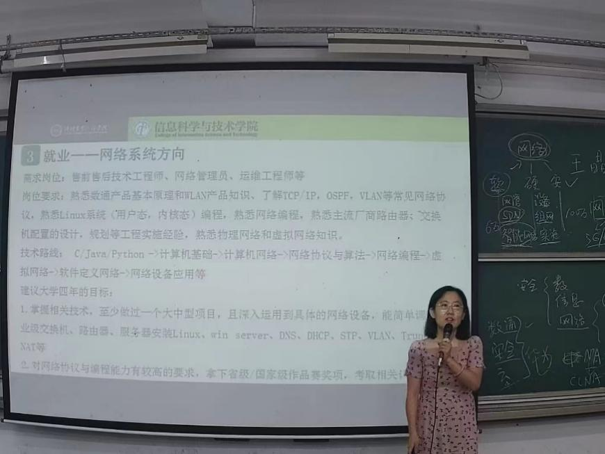 网络工程专业负责人王晶老师于6月30日在教学楼B301进行了专业学习规划与就业方向培训,该培训让学生了解专业学习与职业选择密切相关。