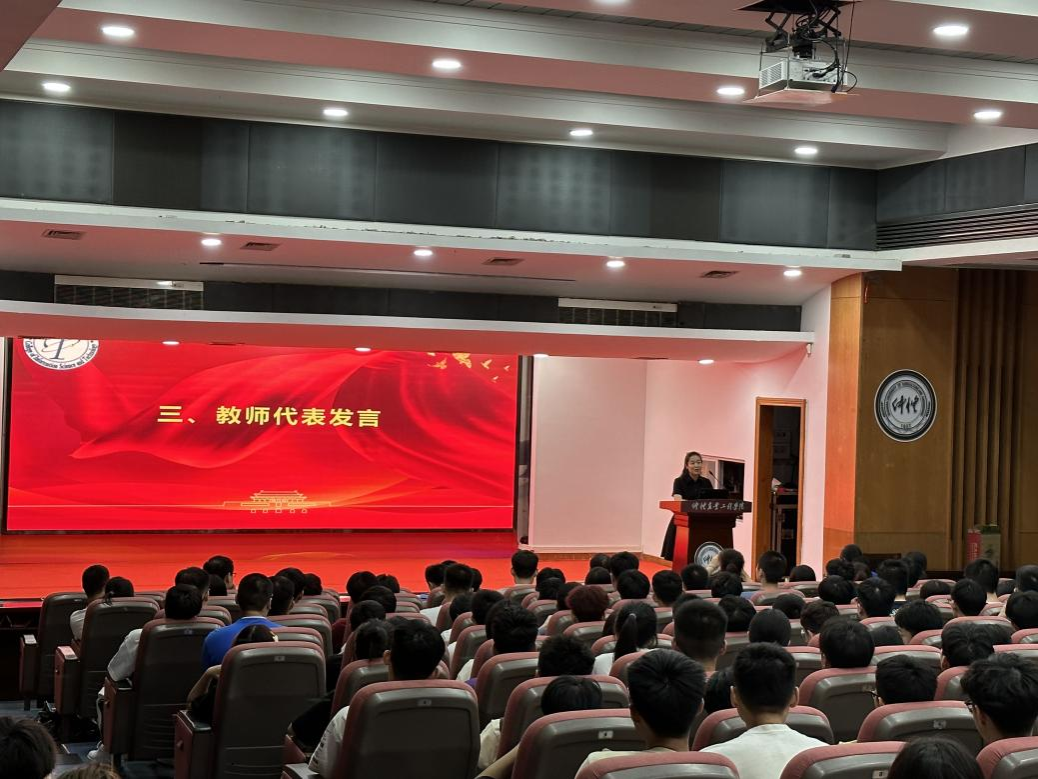 接着,教师代表陈宁夏和王潇老师分享了自己学习和科研的经历,勉励同学们胸怀家国天下、面对挑战要不断努力尝试,争做有理想、敢担当、能吃苦、肯吃苦的新时代好青年。