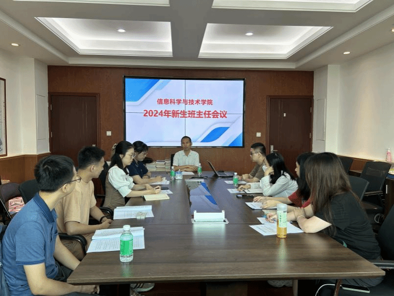 2024年7月4日,信息科学与技术学院于行政楼808召开2024级新生班主任工作会议。学院党委书记熊友华、全体辅导员、2024级新生班主任参加,会议由学院党委副书记吉晓娟主持。