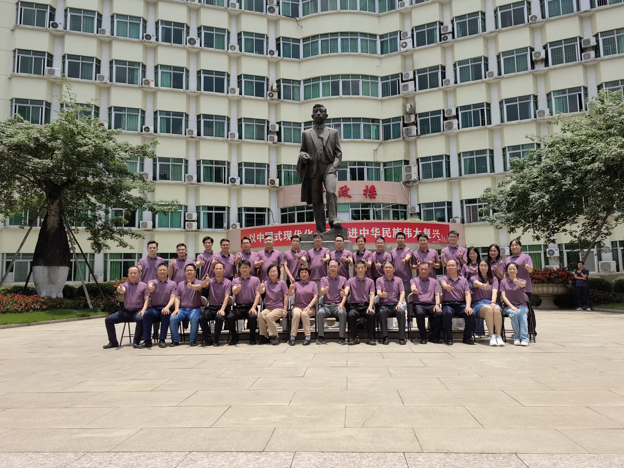 会后,参会人员前往廖仲恺先生铜像前进行合影留念,追忆大学往事,重温饭堂味道,共同展望美好未来。