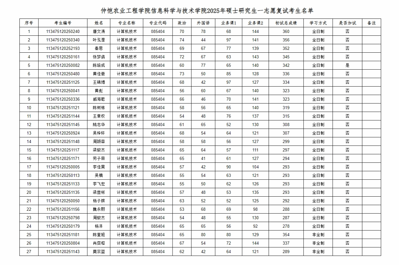 附件:信息科学与技术学院2025年硕士研究生招生考试第一志愿复试考生名单